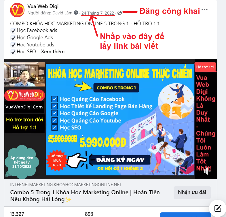 Bước 3: Hướng dẫn cách lấy đường liên kết bài viết trên Facebook