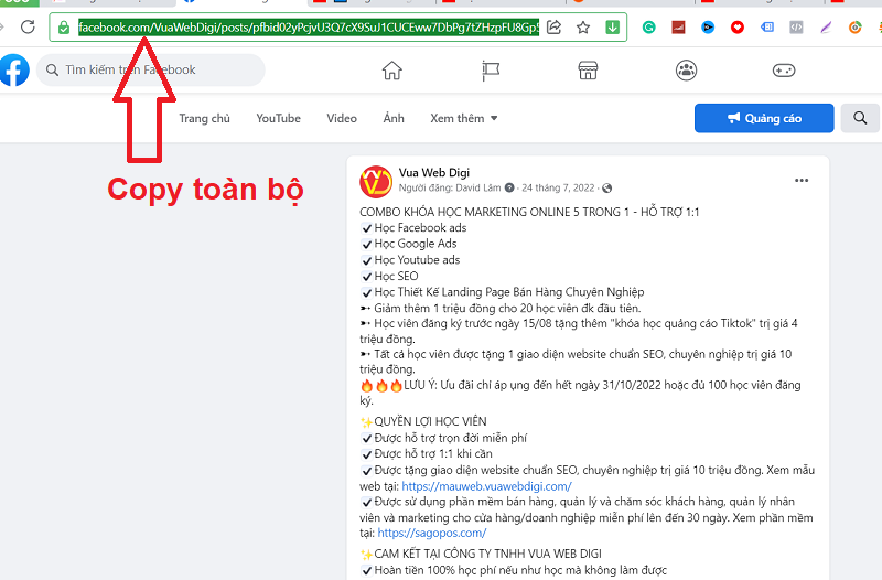 Bước 4: Sao chép link bài viết trên FB cần tăng comments