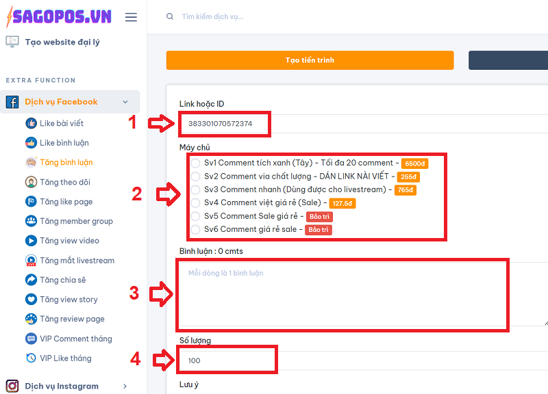 3. Hướng dẫn cách tăng bình luận bài viết Facebook trên hệ thống Sagopos.vn