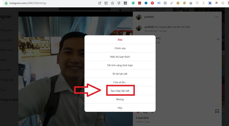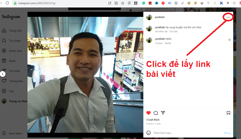 Bước 3: Hướng dẫn lấy link bài viết trên Instagram cần tăng comment