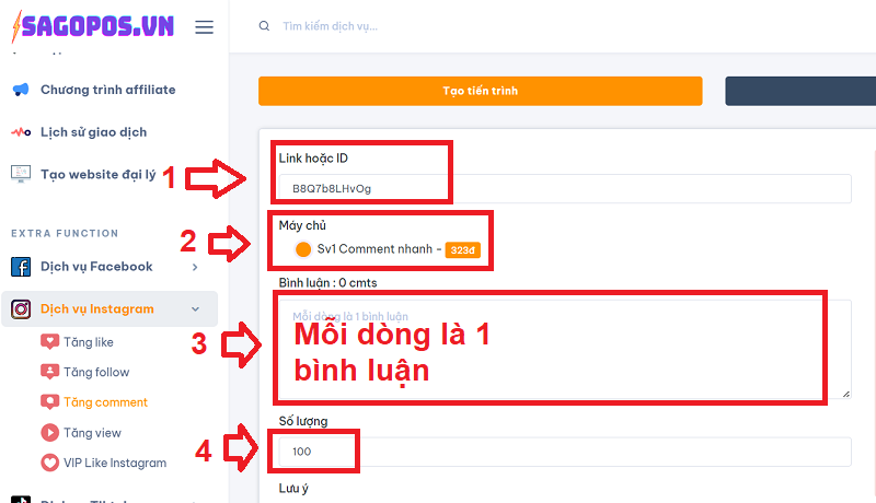 3. Hướng dẫn các bước thực hiện tăng comment bài viết instagram trên hệ thống Sagopos.vn