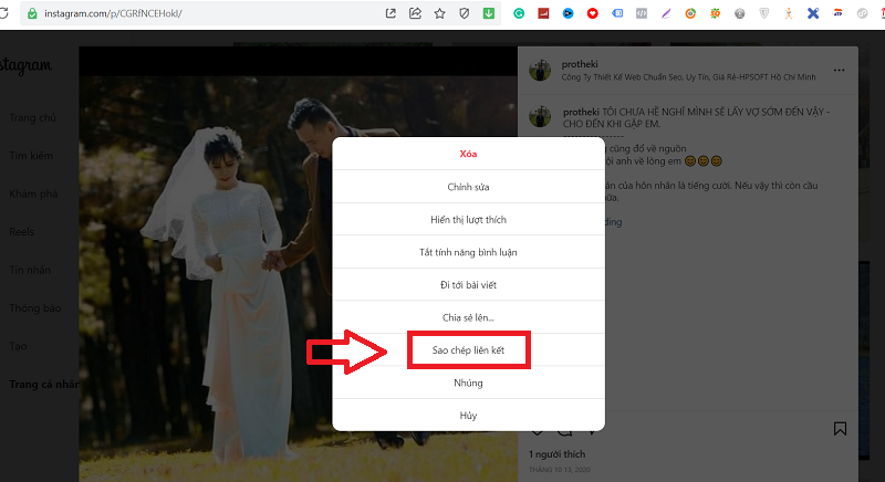 Bước 4 : Nhấn vào "sao chép liên kết" để copy link bài viết Instagram bạn muốn tăng like