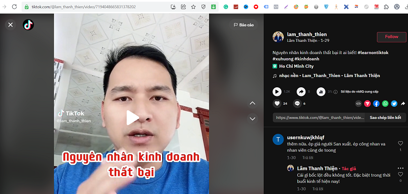 =>> Video phải đăng công khai và link video có dạng: https://www.tiktok.com/@lam_thanh_thien/video/7194048665831378202