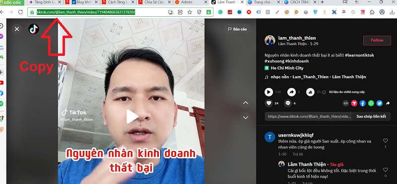 Bước 3: Sao chép đường liên kết của video mà bạn muốn tăng comment