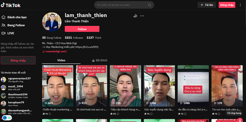 Linh video tiktok đúng có dạng: https://www.tiktok.com/@username/video/id_video.