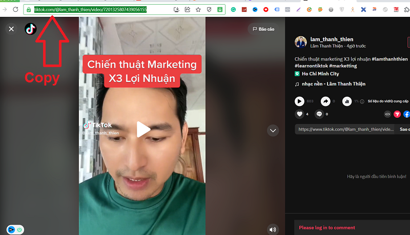 Bước 3: Sao chép đường liên kết video Tiktok của bạn trên thanh công cụ tìm kiếm