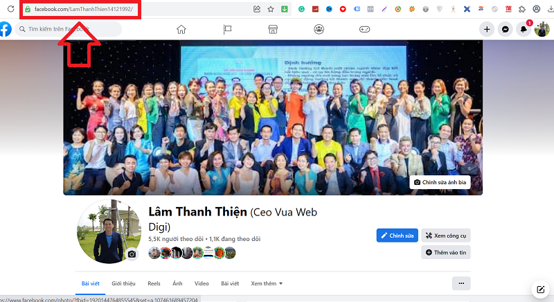 Bước 3: Sao chép đường liên kết trang cá nhân của bạn trên thanh công cụ tìm kiếm