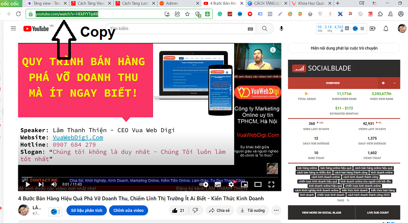 Bước 3: Copy đường liên kết video youtube của bạn trên thanh công cụ tìm kiếm