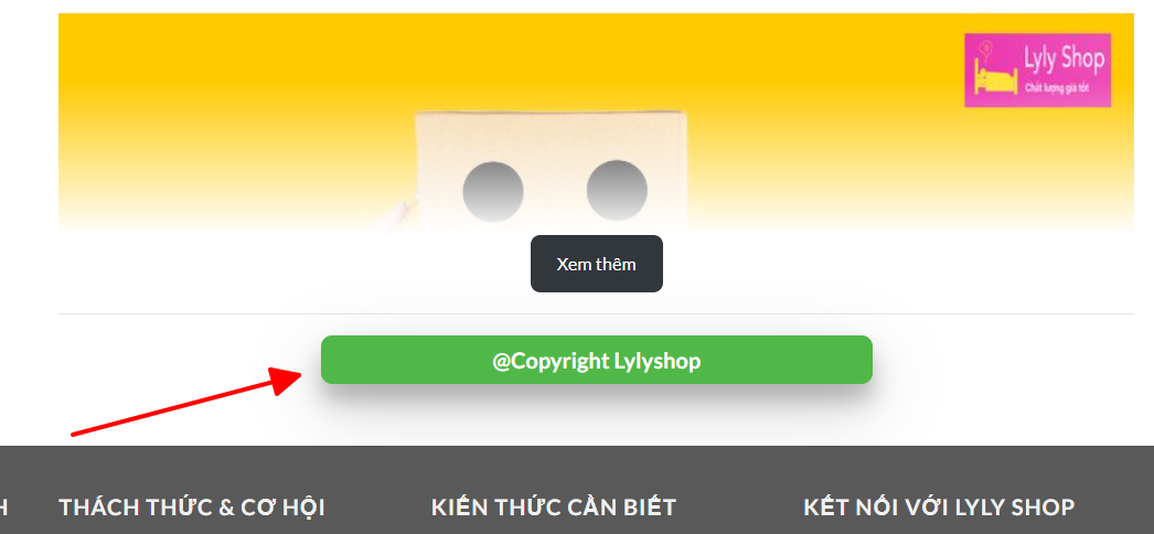 Bước 4: Kéo đến cuối trang - Click vào “@Copyright Lylyshop” chờ lấy mã code