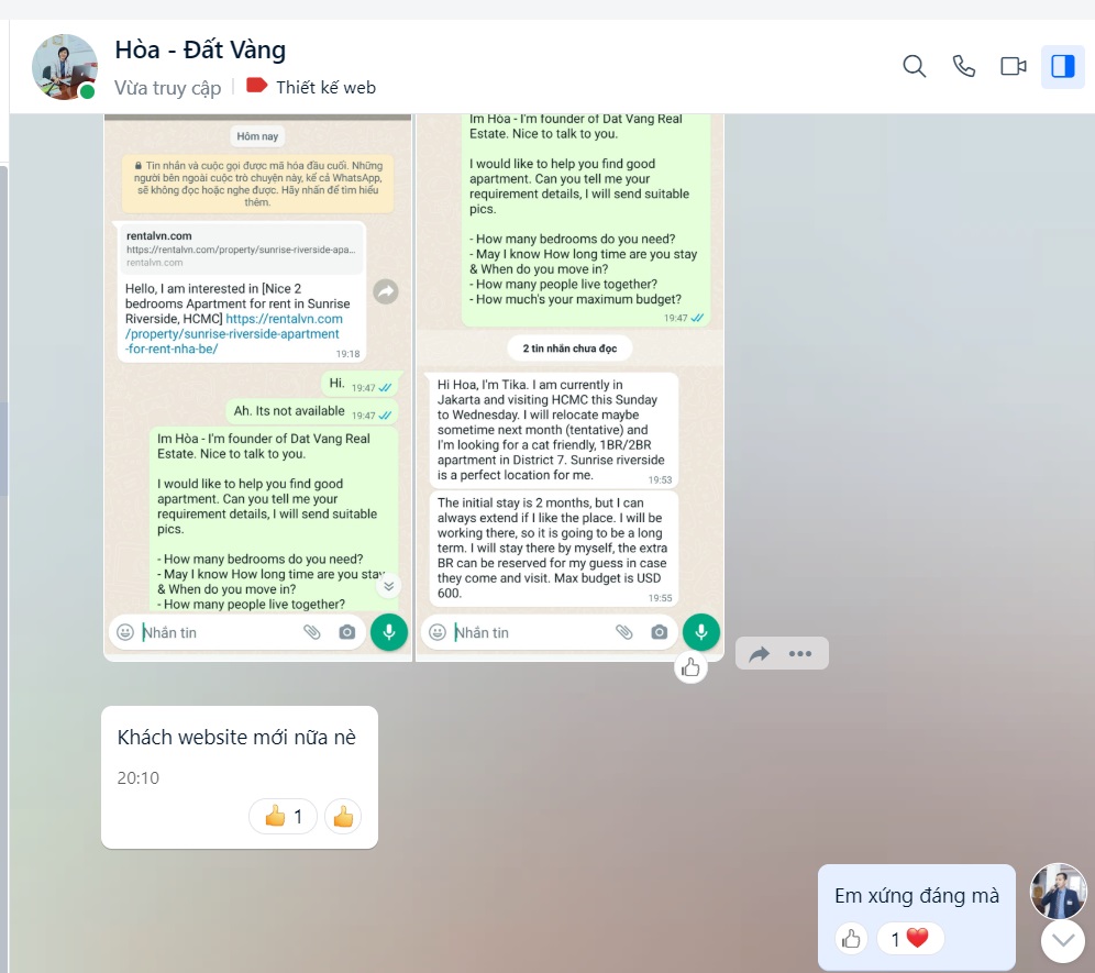 Thiện luôn tin rằng có luật nhân quả. Chắc chắn có điều gì đó mà khách hàng lại chọn Vua Web Digi là đơn vị thiết kế website cho doanh nghiệp trọn gói mà không phải nơi khác. Và Thiện đã trực tiếp hỏi khách hàng của mình thì nhận được những phản hồi như sau: