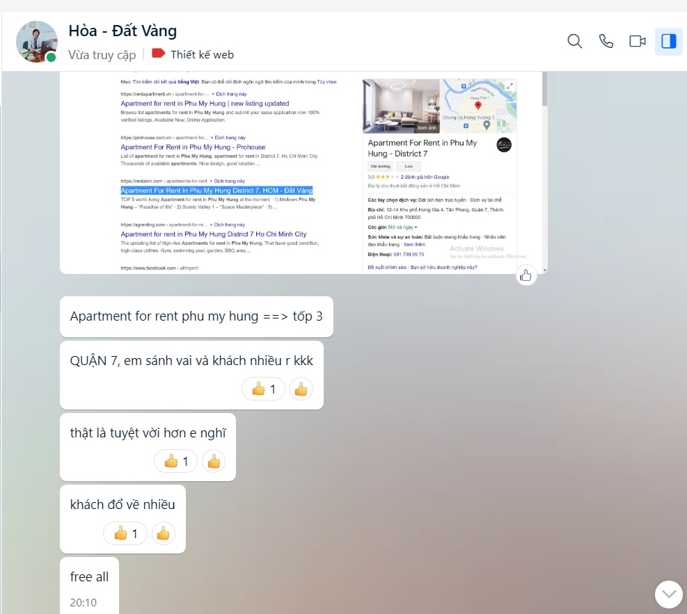 - Giúp khách hàng định hướng xây dựng website lên top google từ đó có hàng nghìn khách hàng miễn phí mỗi tháng.