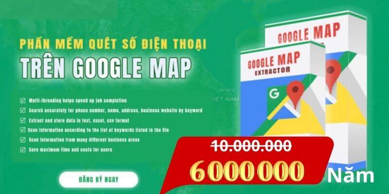 Bảng giá phần mềm quét data khách hàng trên Google Map vô cùng hợp lý. Ưu đãi chỉ còn 6 triệu/năm